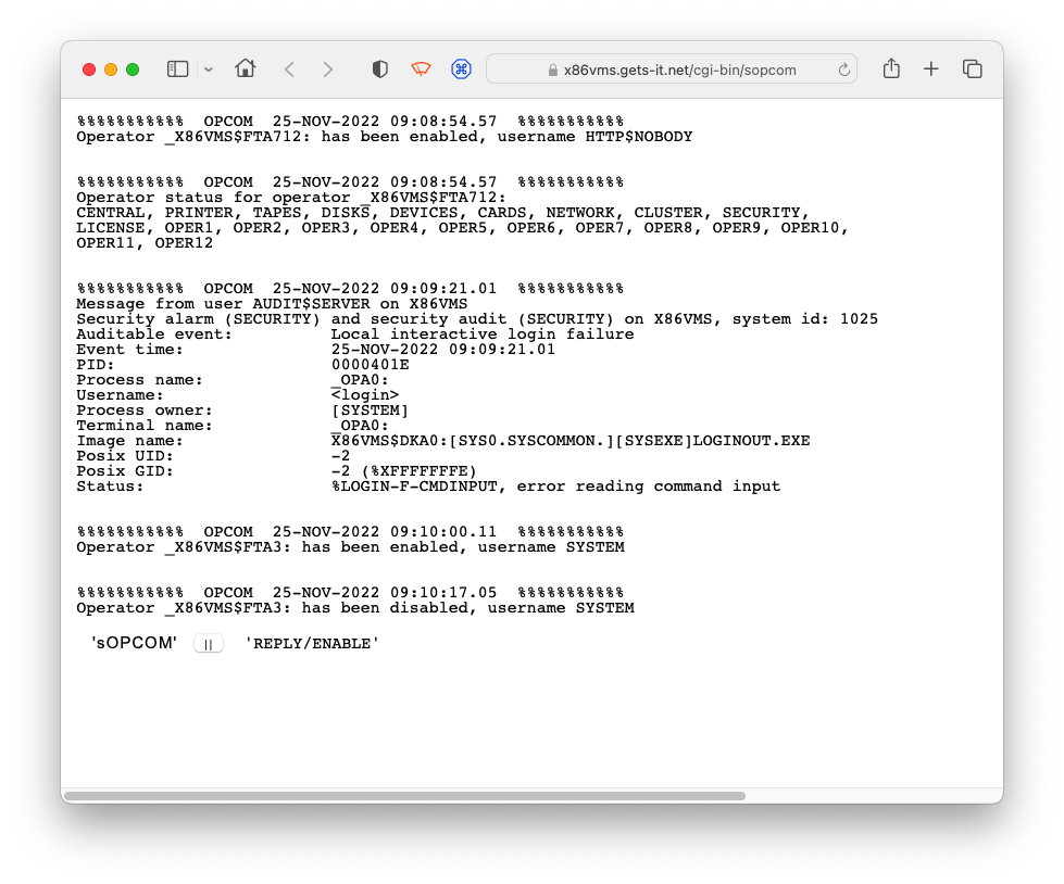 Monitor OPCOM messages in a browser window. Requires INSTALLation with privilege. |